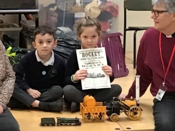 Today, our Y1 children concluded their History topic on transport with a visit from Mark and Aileen, from Market Deeping Model Railway club. They shared home videos of trains they have spotted and answered questions with their vast knowledge of trains. The children also had the opportunity to see some models such as the one pictured here of the famous Rocket.